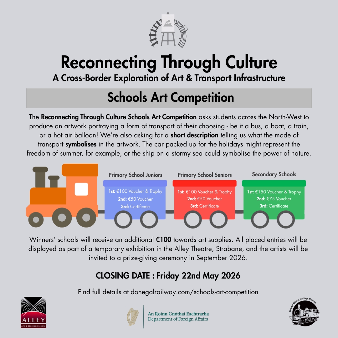 Donegal Railway Heritage Museum have announced the details of their Reconnecting Through Culture Schools Art Competition, part of a wider Shared Island funded project in association with the Alley Theatre Strabane.