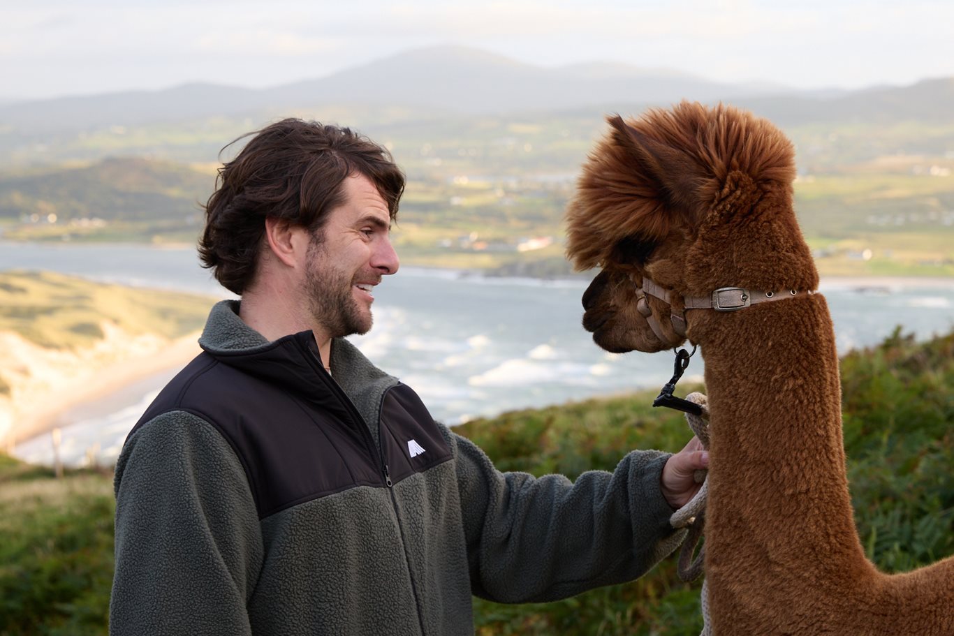 Donegal social media star Eric Roberts meets his hairstyle match at Wild Alpaca Way, Malin Head.