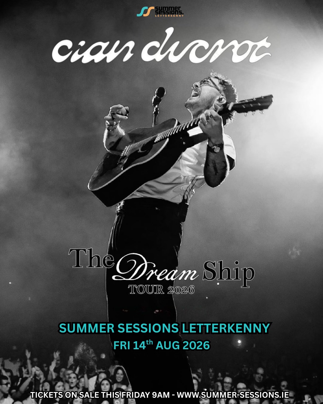 Following a year which saw him release his second studio album Little Dreaming, as well as performing to a sold-out 3Arena crowd, Cork singer-songwriter Cian Ducrot returns this summer to play the Summer Sessions Letterkenny, on Friday 14th August 2026. Tickets €55 +b.fee on sale this Friday 23rd January at 9AM from